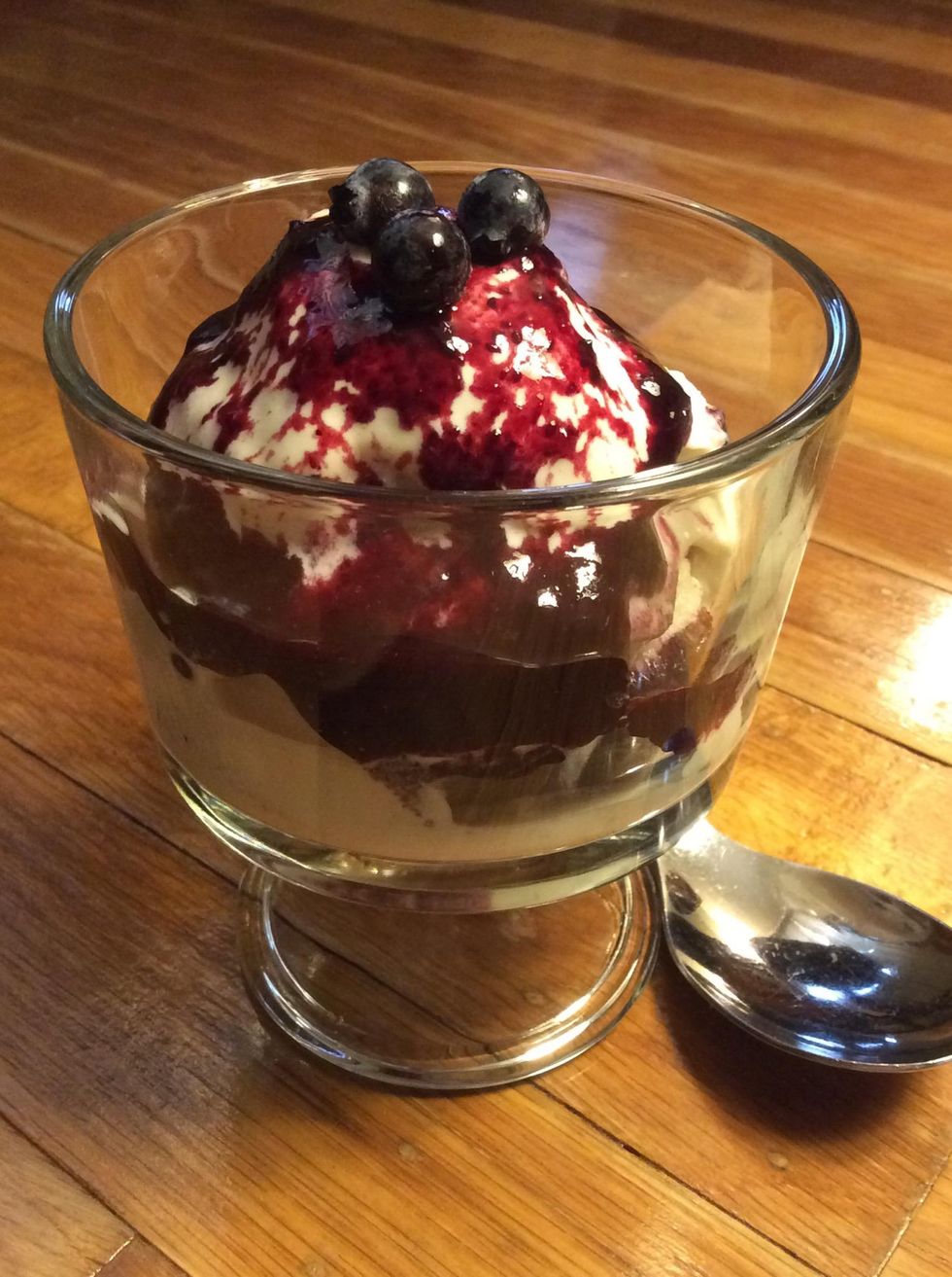 My container, a little ice cream, some wild blueberry syrup (see my Pennsylvania wild blueberry syrup guide ), more ice cream more syrup and freeze. Serve in a couple of hours.