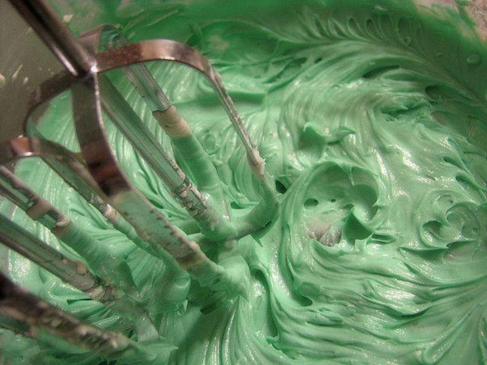 Add in peppermints; beat 5 minutes,until mixture is blended and smooth.