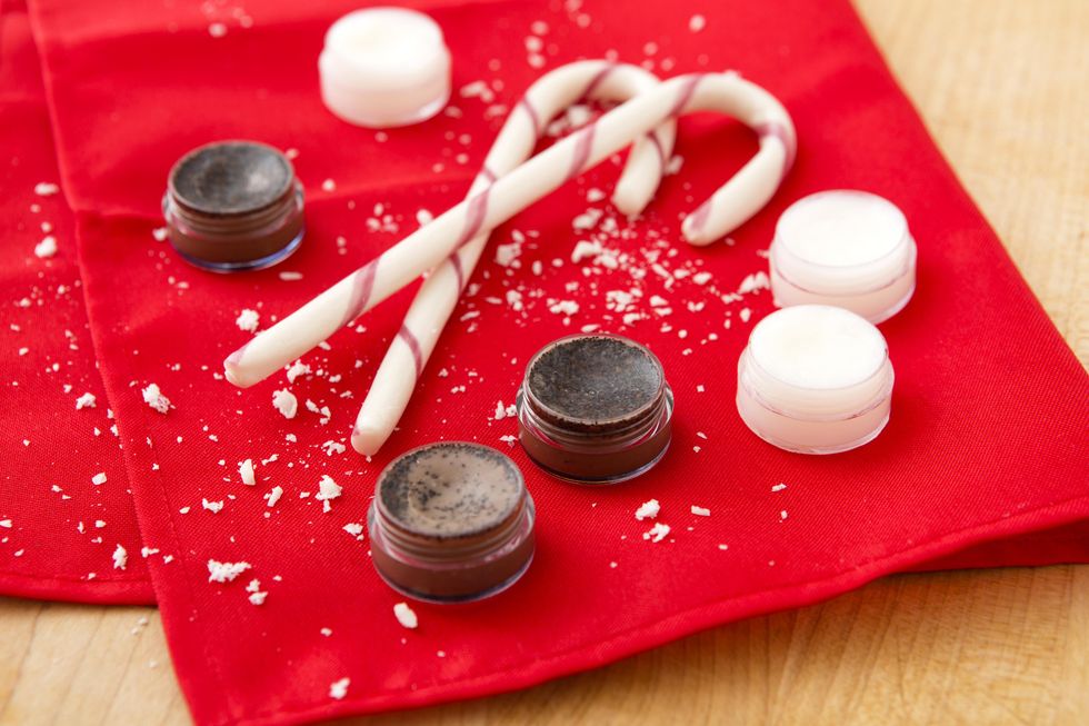 Add 3 drops of peppermint essential oil. Pour into small container and refrigerate for 5-10 minutes until balm has hardened.