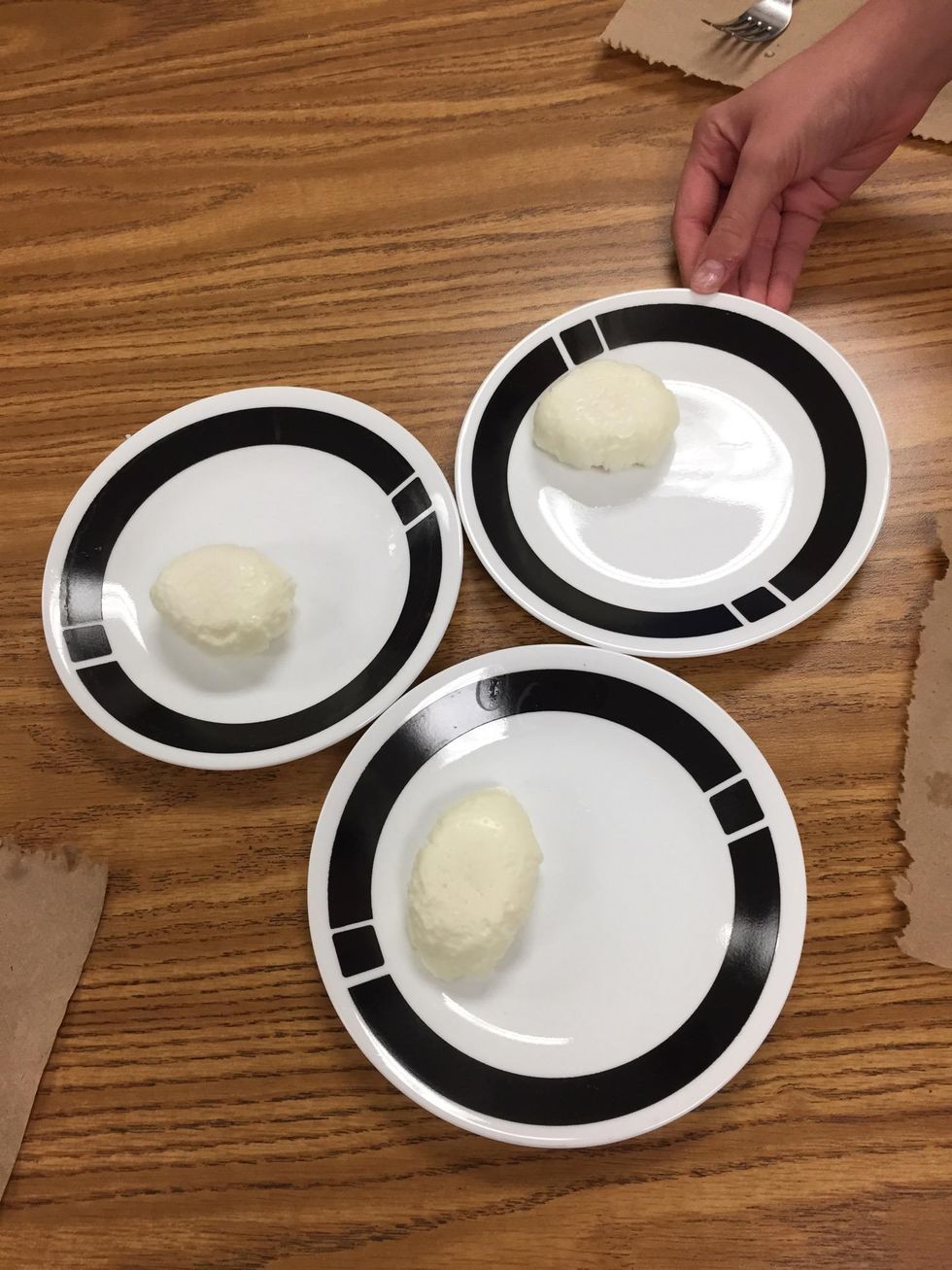 After the timer goes off(or until cooked all the way through), use a slotted spoon to scoop out egg pouches onto the plate . Poke the outside to ensure stiff ,for the yolk make sure it is giggly.