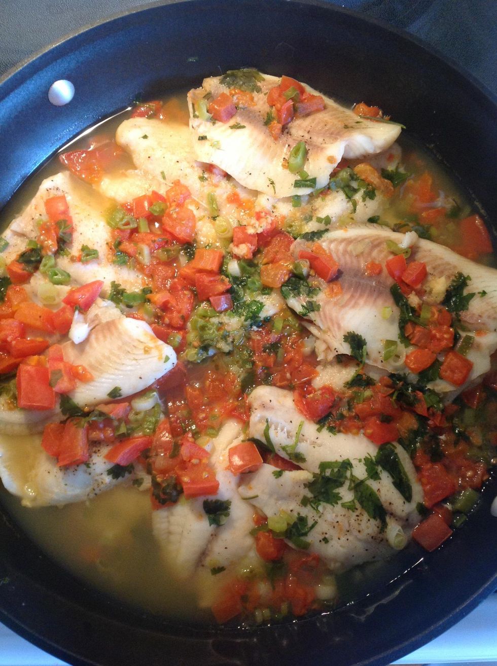Place on stove top on medium for about 15 minuets or until fish is done. (Flakey and white)