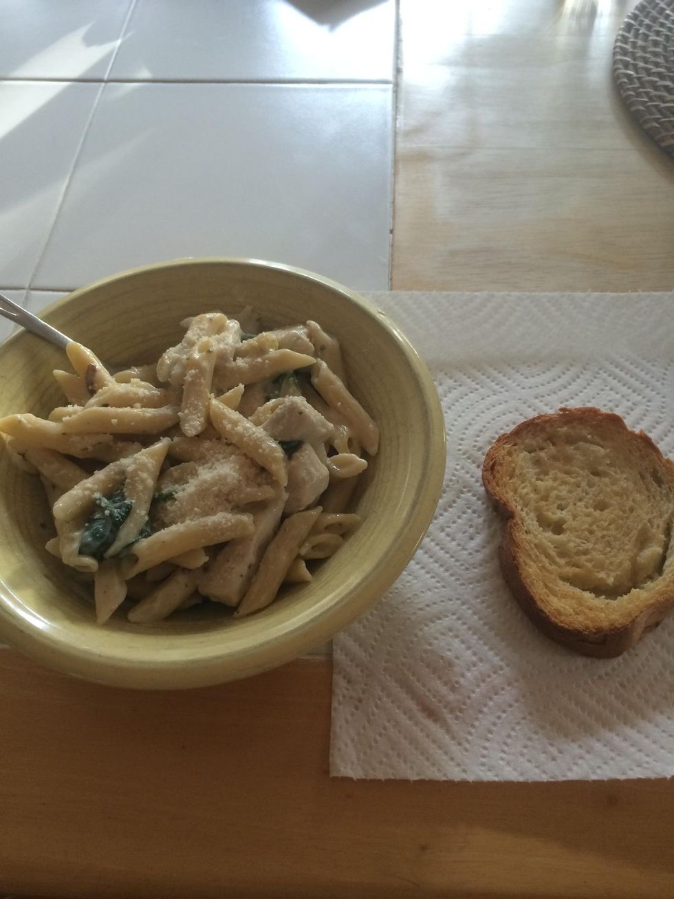 Once chicken is cooked all the way, add 2 cups spinach to the skillet and let simmer for approximately 5 minutes on low heat.