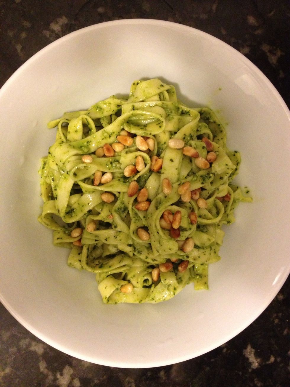 Roast some pine nuts and sprinkle them over the pasta et voila! Enjoy!