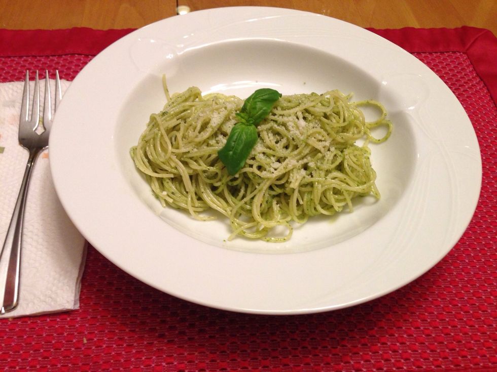 Pine nuts, basil, parmesan cheese, garlic, olive oil and salt are all you need to make a fresh and authentic pesto sauce!