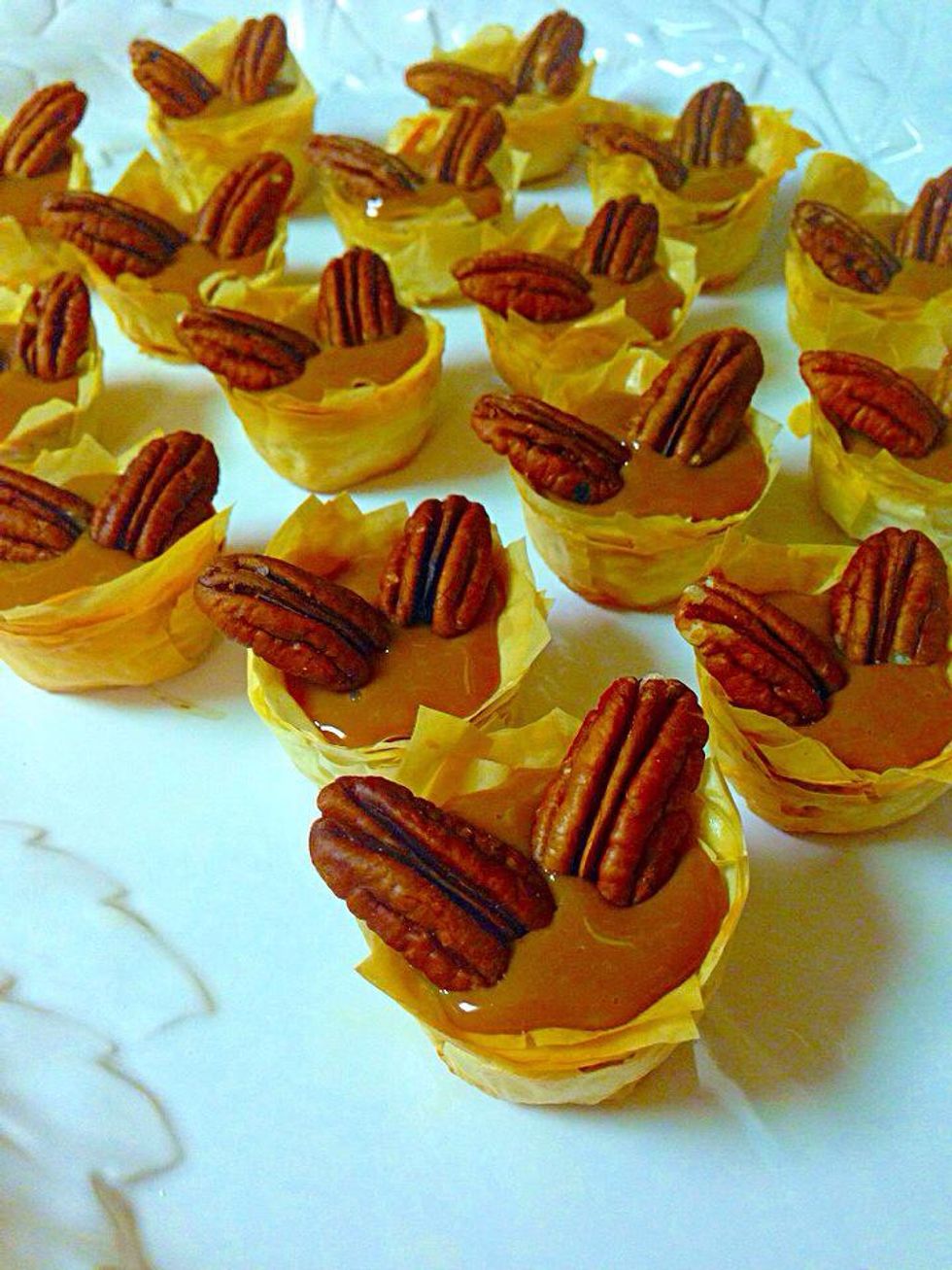 I used 6 pieces of phyllo in each cupcake cup. Bake on 350'F for 10-15 minutes
