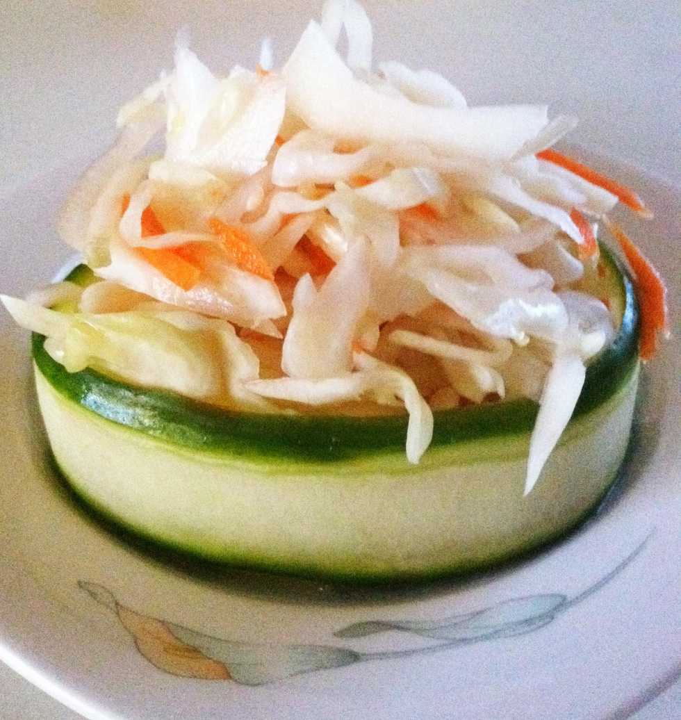 Add the remaining ingredients to the liquid. Cover and refrigerate. This slaw lasts long when refrigerated. Just stir to blend flavors.