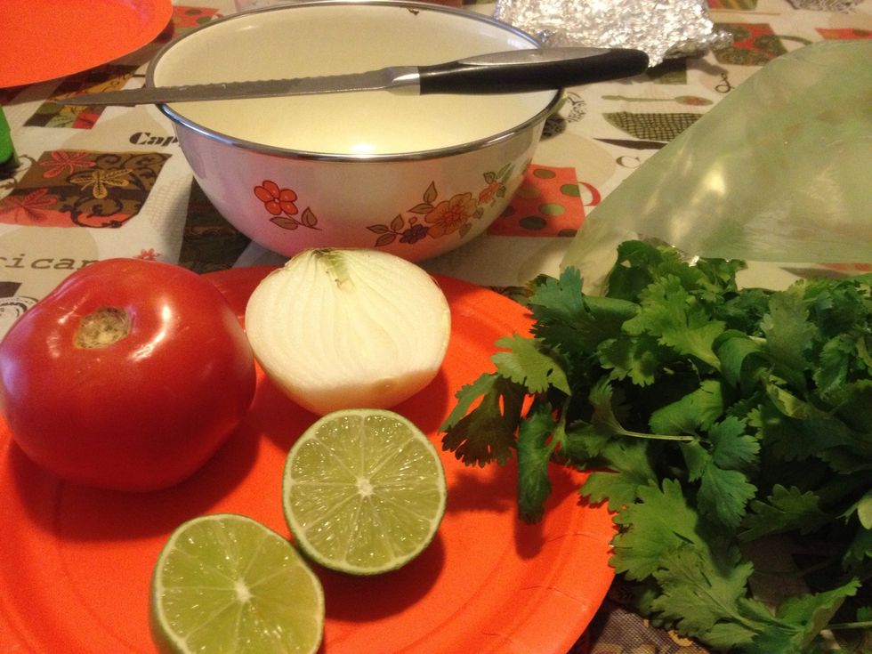 I usually like to dice up a jalapeƱo and add it for a more spicy pico de gallo but didn't have one on hand today. If you are going to do this remember to remove the seeds or it might be too hot!