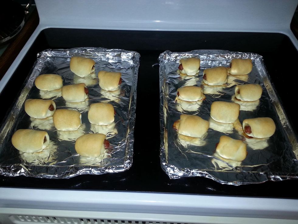 Place the pigs in a blanket on the baking sheet leaving about a inch of space between them.