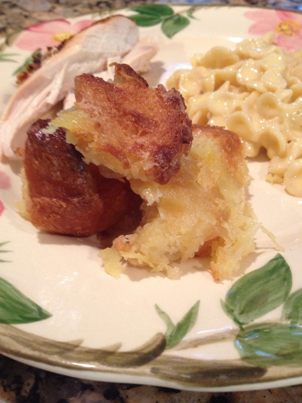 Now usually bread pudding has a wonderful rum sauce or caramel sauce. However i love it as a side dish. Pairs perfectly w ham or roasted chicken