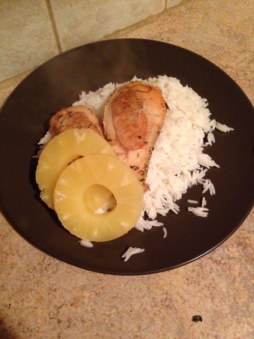 Place your rice and Pineapple Oolong Chicken on a plate and garnish with pineapple rings! Enjoy!!!
