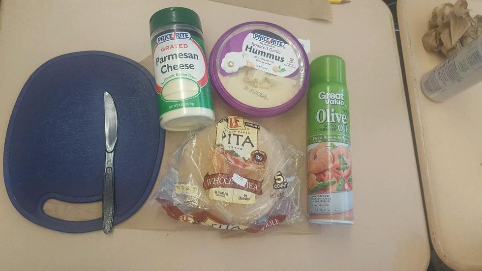 Pre-heat the oven to 350 degrees, and bake the pita slices for 10 minutes or until golden brown.