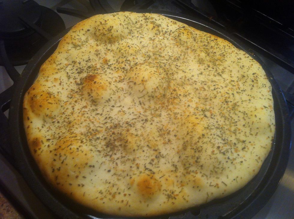 I sprinkle these spices (blend of rosemary, garlic, oregano, thyme) onto a oiled pizza dough.Like so.I add some dried basil, sea salt and pepper.Preheat oven to 475.Watch the dough rise!Golden crust in about 10 minute! Enjoy !