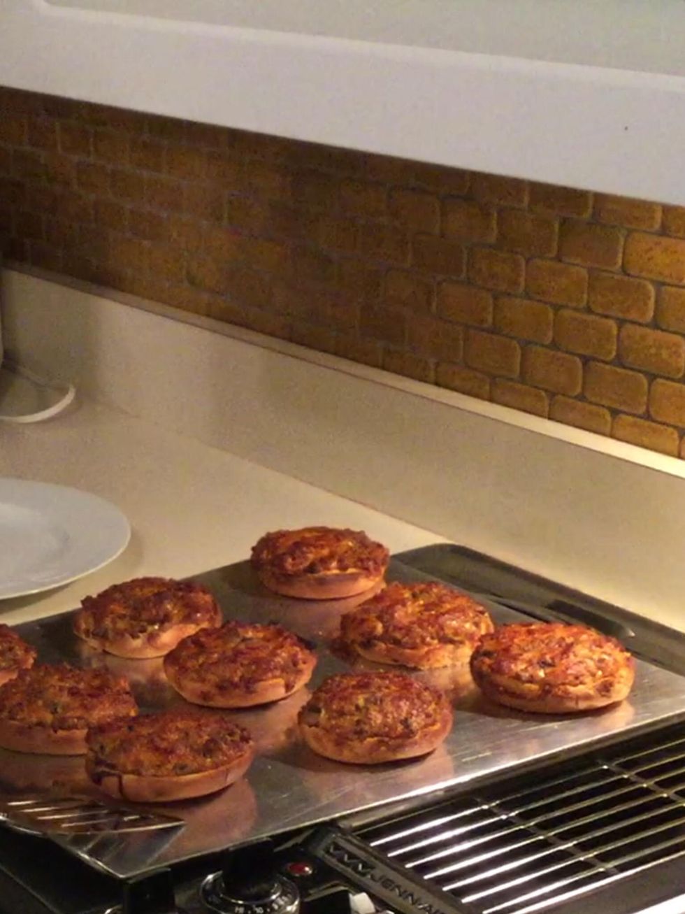 Take the buns out and place a half of a bun facing up on the pan. Put as many as you can fit without them touching