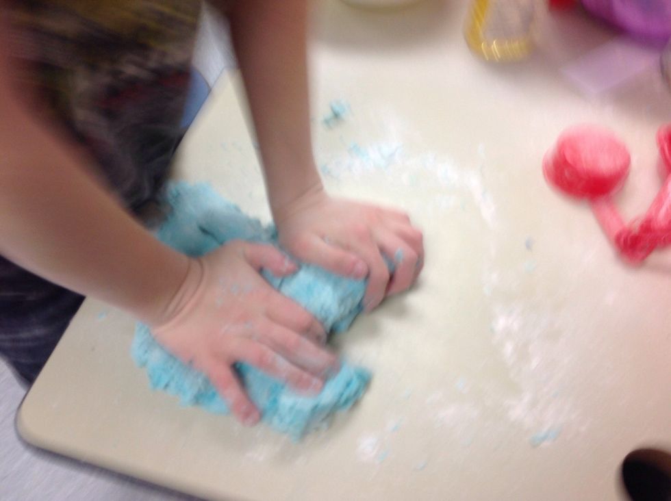 Mix that all together. Mix in some flour on a table while you are mixing it with your hands.