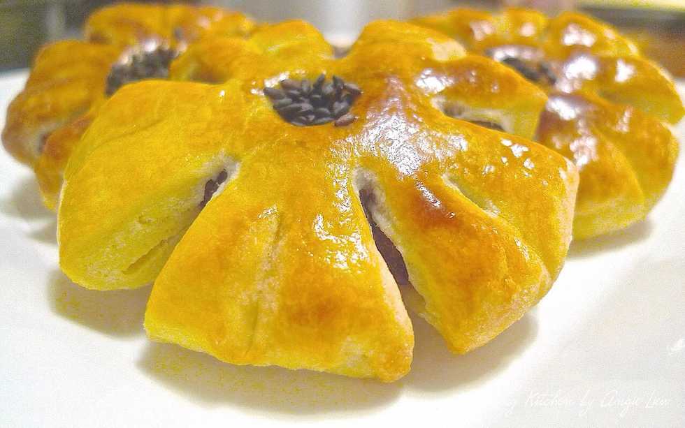 Sprinkle some black sesame seeds in the centre ( depression ). And what you is a pretty plum blossom mooncake!