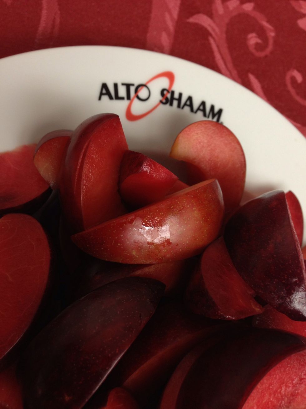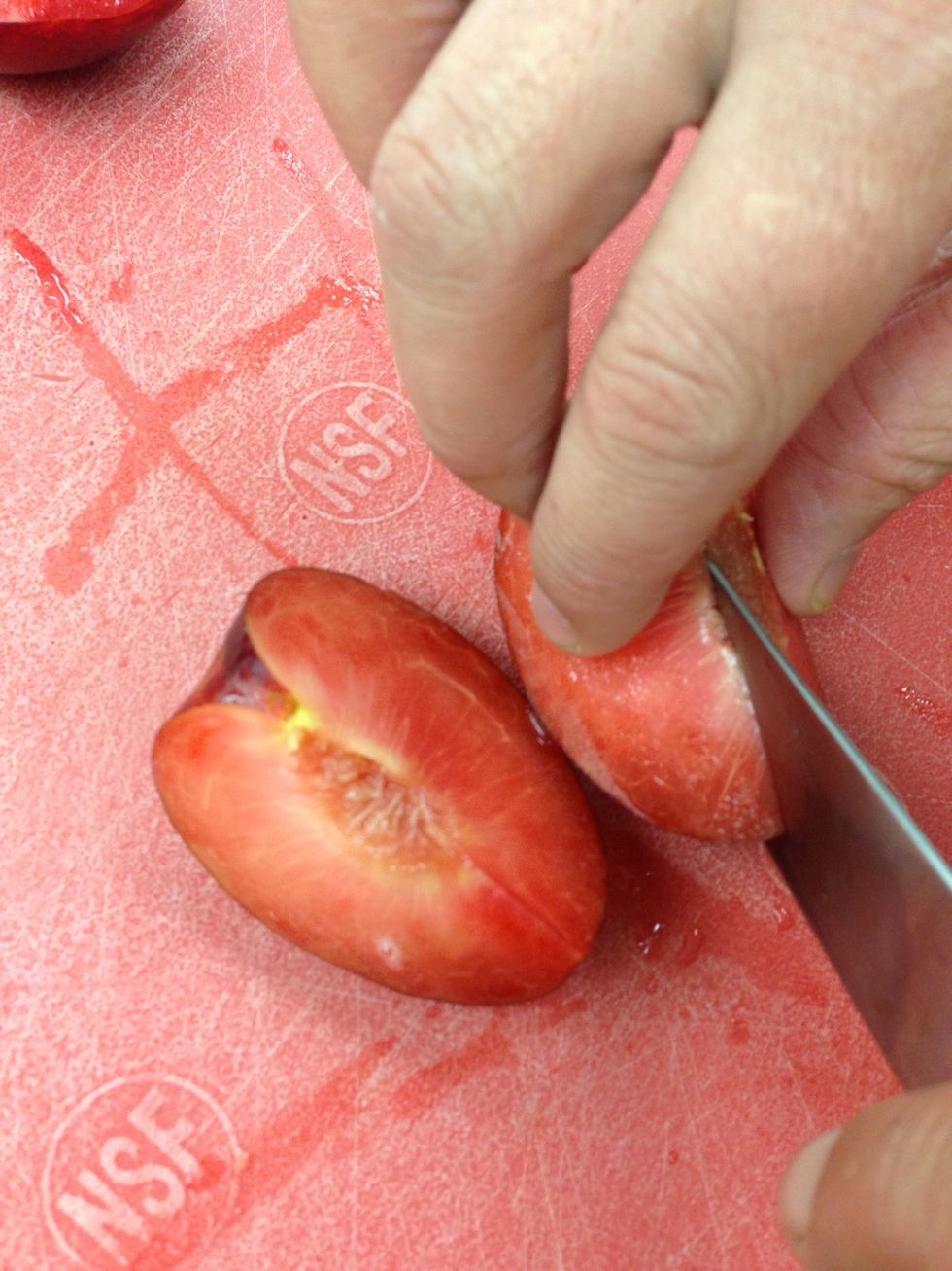 Cut the plums into wedges.