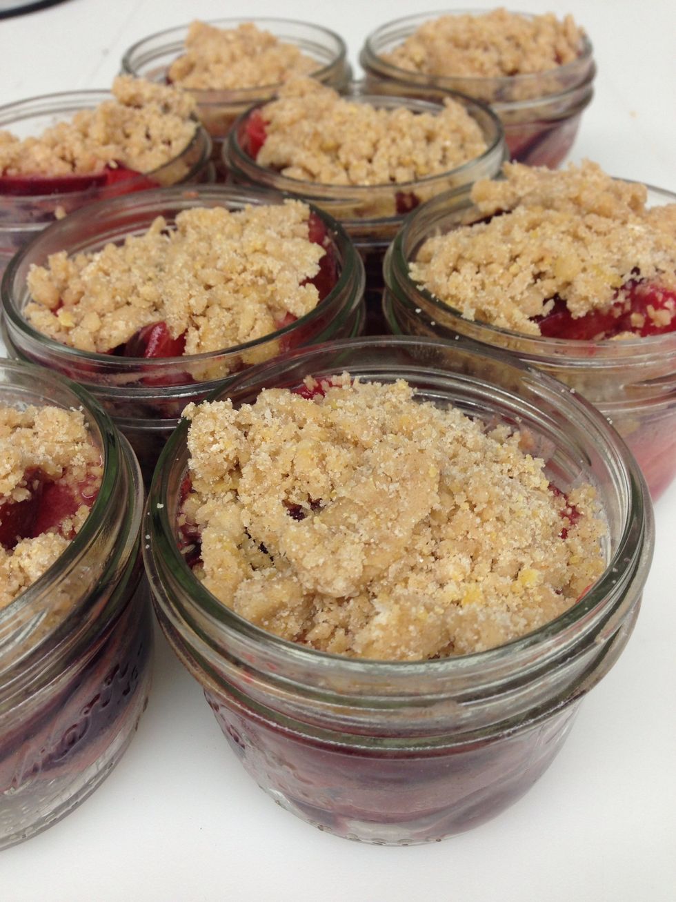 Top all of the jars with the crumble topping.