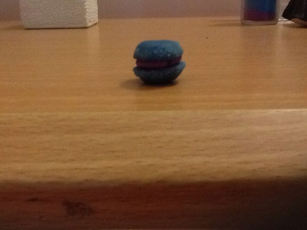 Assemble the purple piece on the first blue piece and that on the other blue piece ,like so