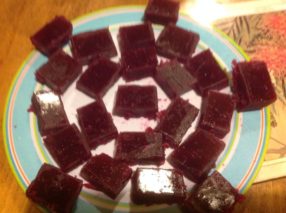 The ingredients you will need are: 1/4cup of sugar 1cup of pomegranate juice 1/4cup water 2tablespoons cornflour 1envolope unflavoured gelatine 2packets of Rasberry jelly crystals
