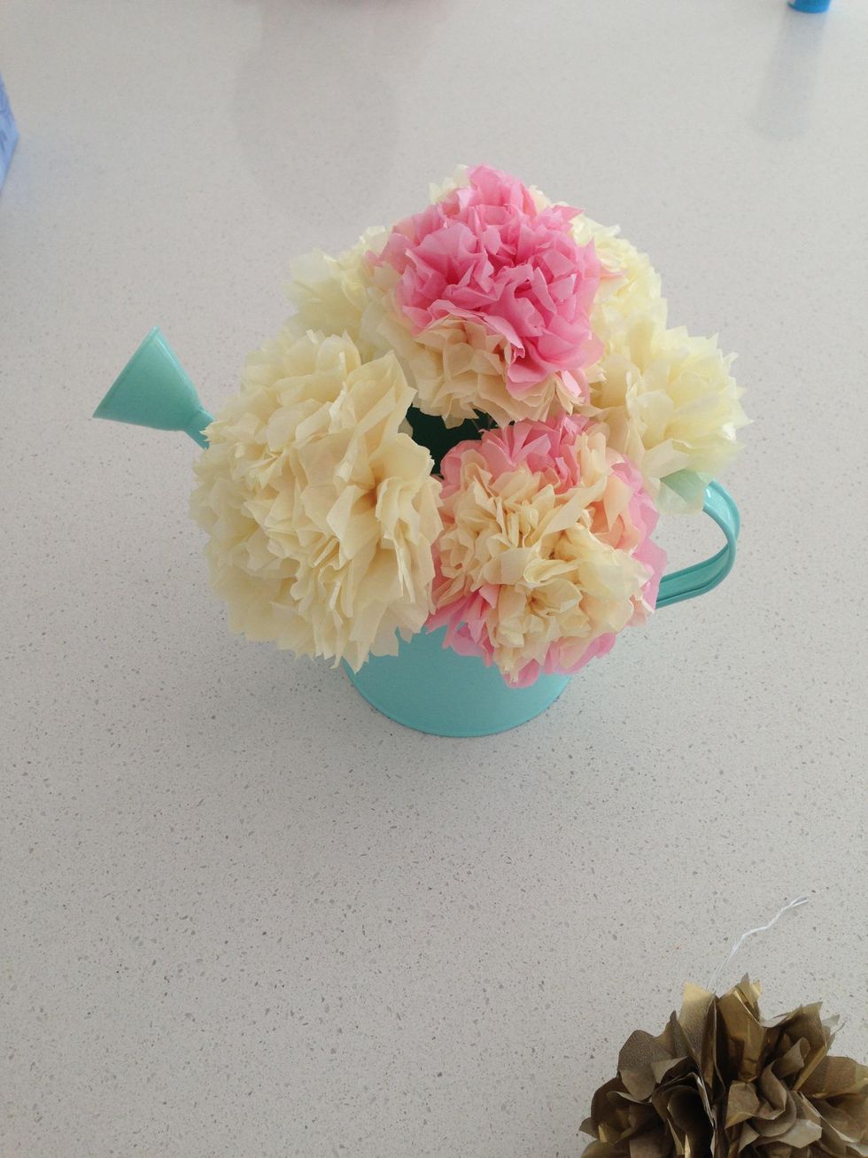 Cut 6-8 sheets of tissue paper into rectangle, in this pict I measure approx 5inch width and 10-12inch length. This size makes a flower of the size of my fist.