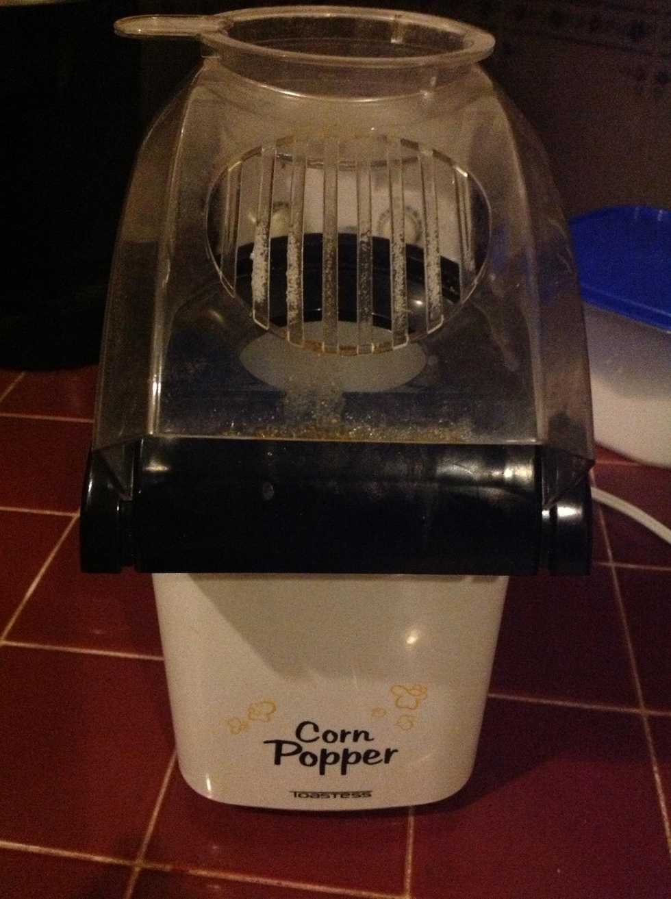 Place large plastic bowl at base of popcorn maker