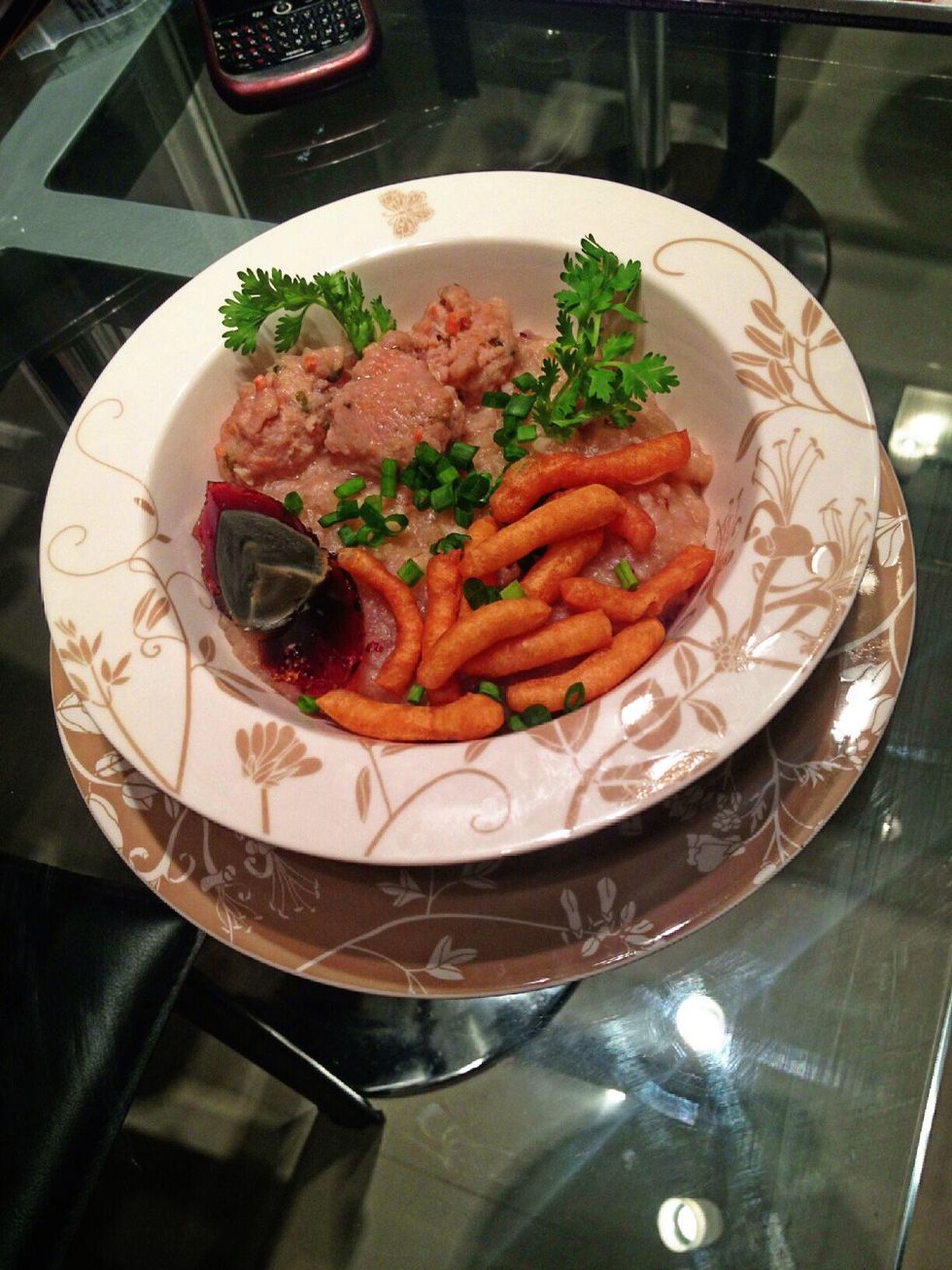 Mince the pork (i add minced cooked carrot and seaweed) add 1/3 tbsp soy sauce and sesame oil stir together and put in the fridge.