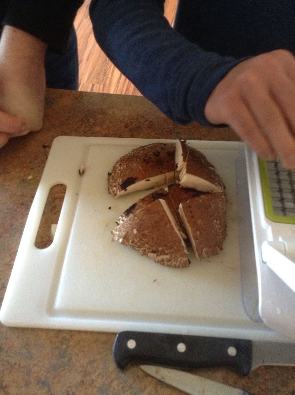 Carefully using cutting board and knife cut the top and bottom off the onion