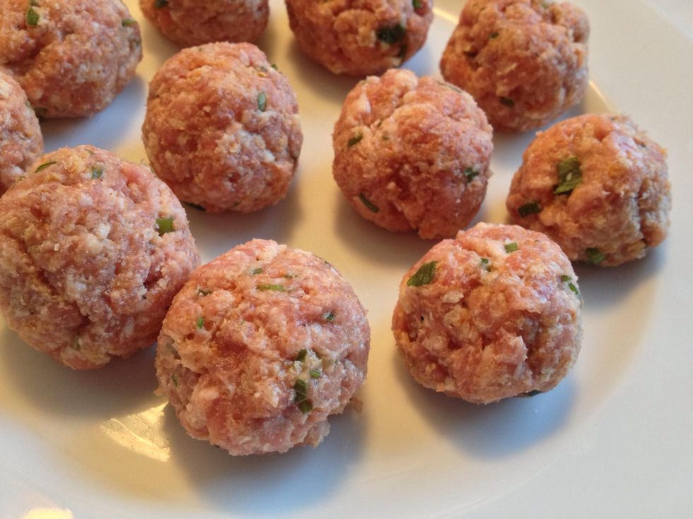 Form the meatballs into small balls the size of a walnut. Put them on a plate covered with plastic wrap. Put them in the fridge for at least half an hour.