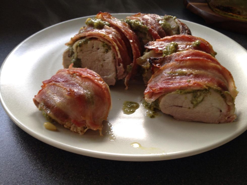 How to make pork tenderloin with pesto wrapped in bacon🍴