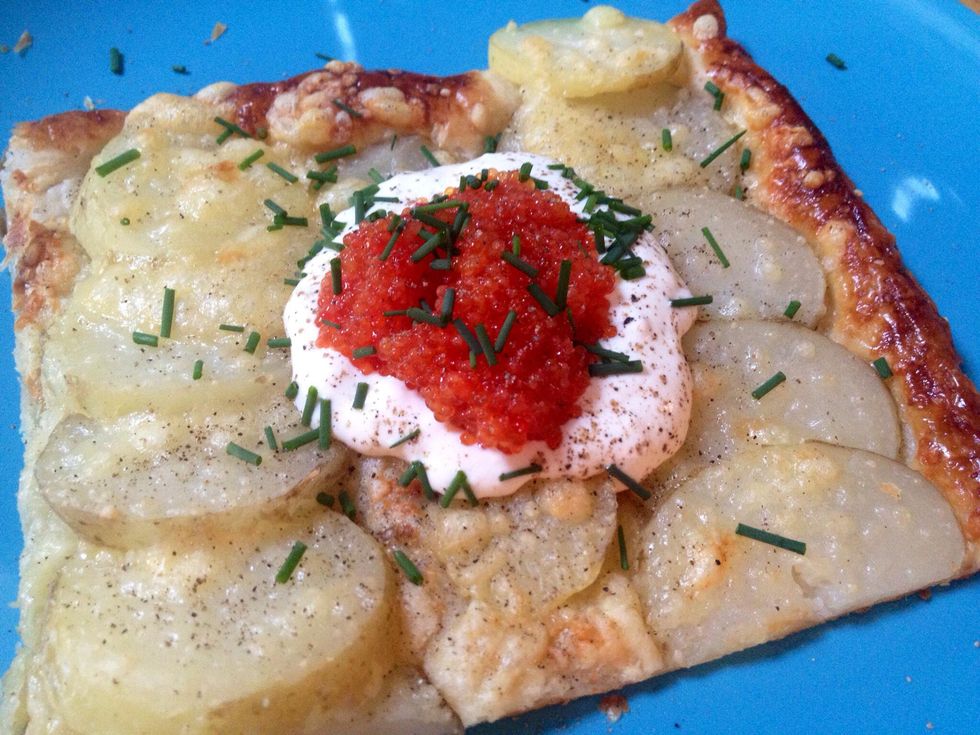 Add sour cream, roe and chives. Finish off with some black pepper.