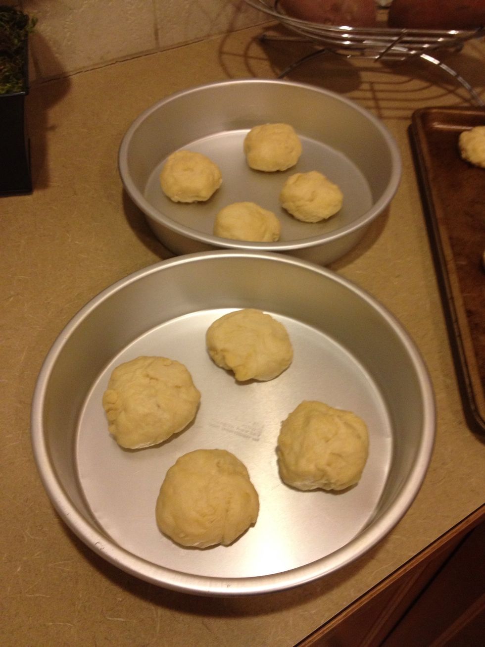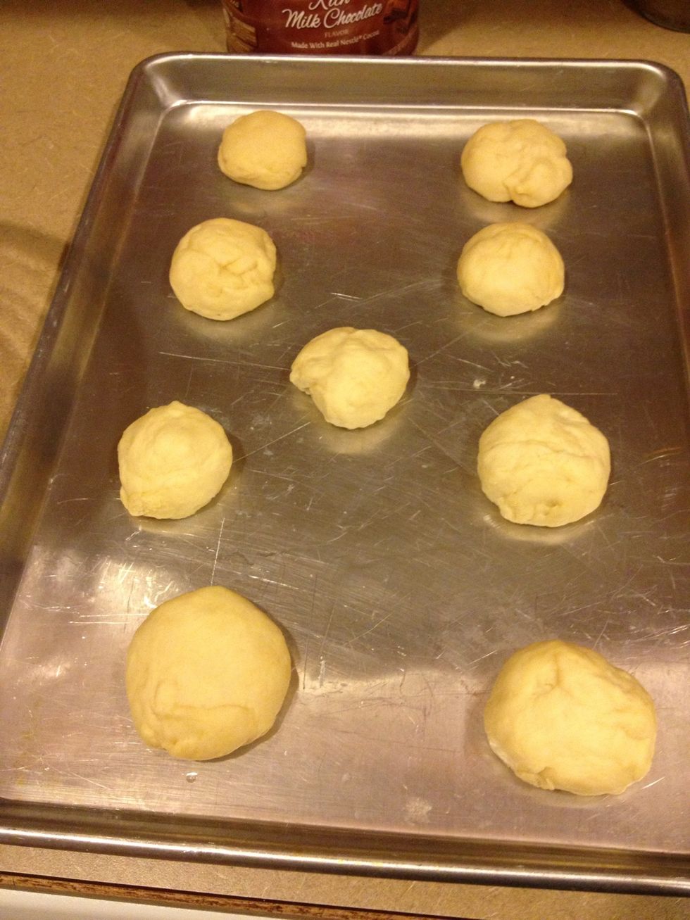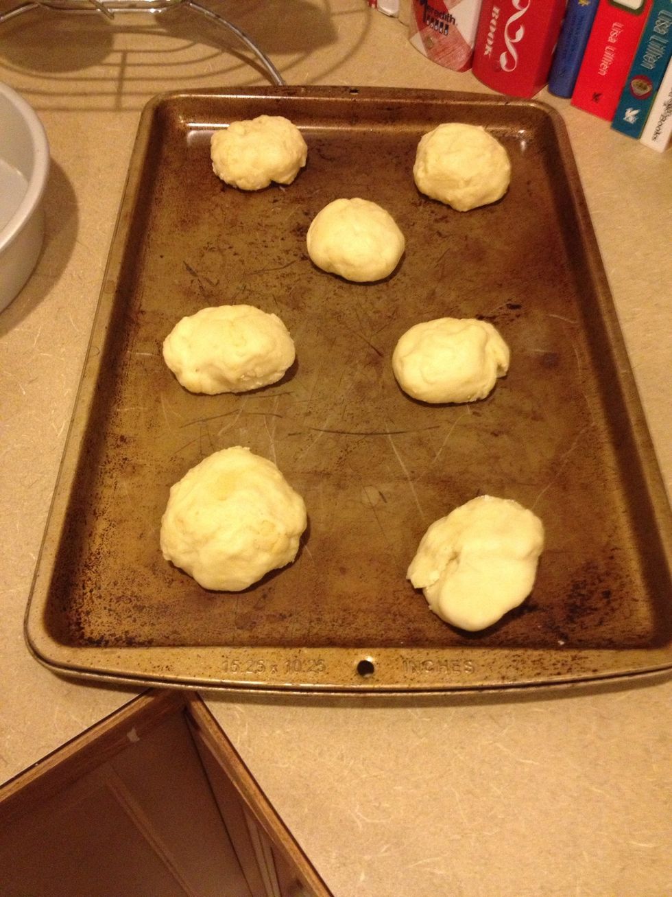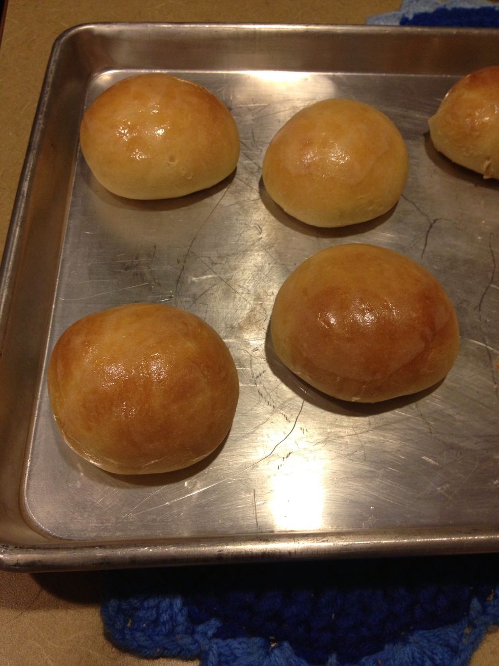 Once doubled in size again, bake at 350 degrees Fahrenheit for about 15 minutes until lightly browned