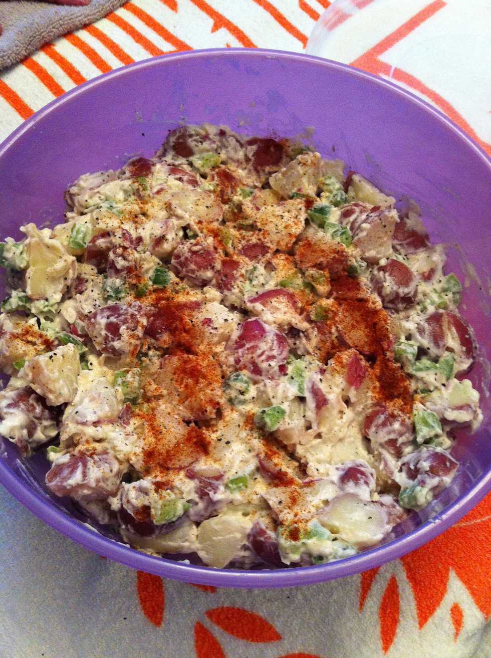 ...and there you have it. Potato Salad! Refrigerate for several hours to let the seasonings and favors meld together. Season more if desired once ready to serve.