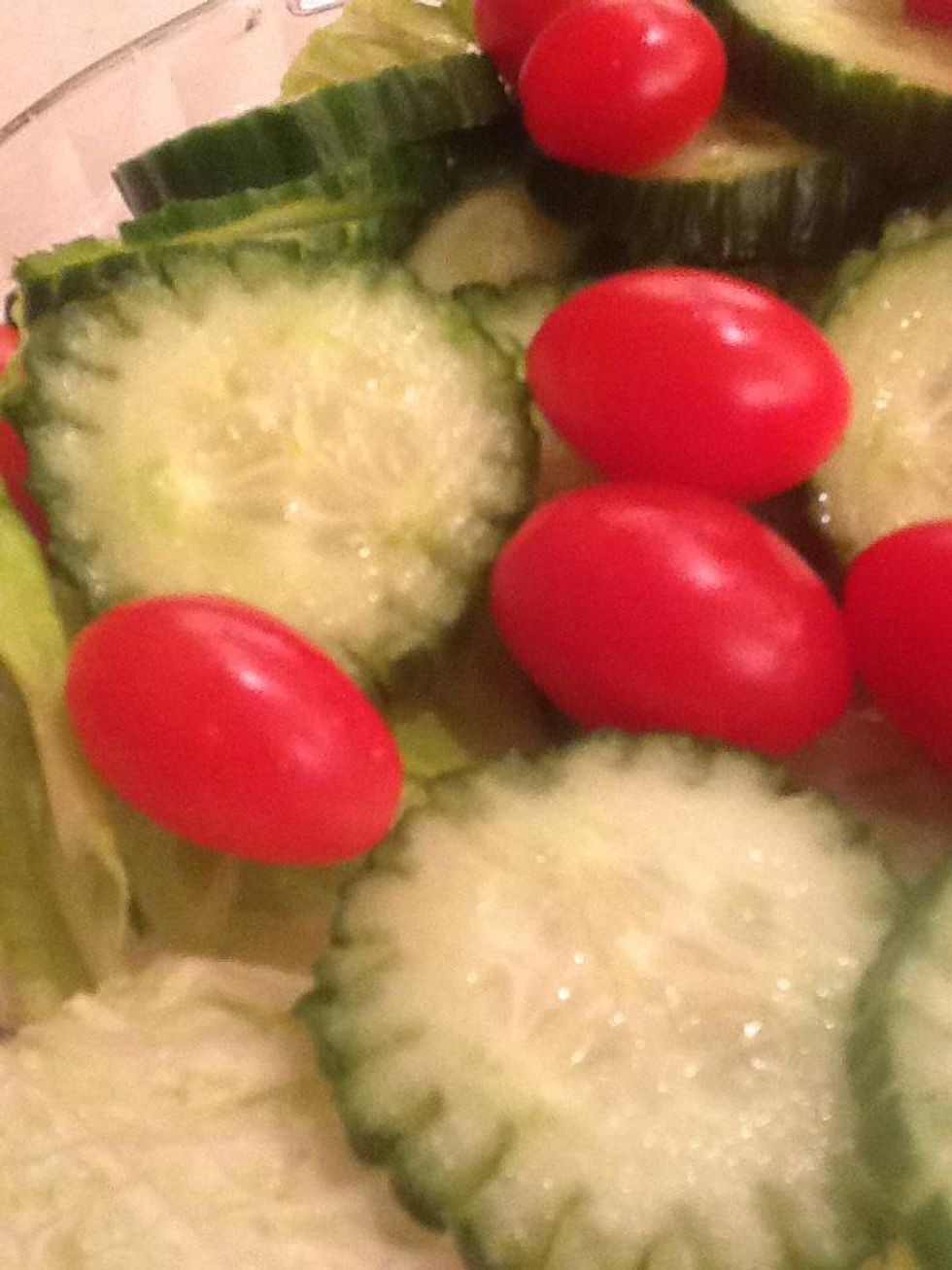 Pick up the cucumber and cut the tip offThen take the fork and scrape it down all around the cucumberThen cut the cucumber into circular slices!And then your done!
