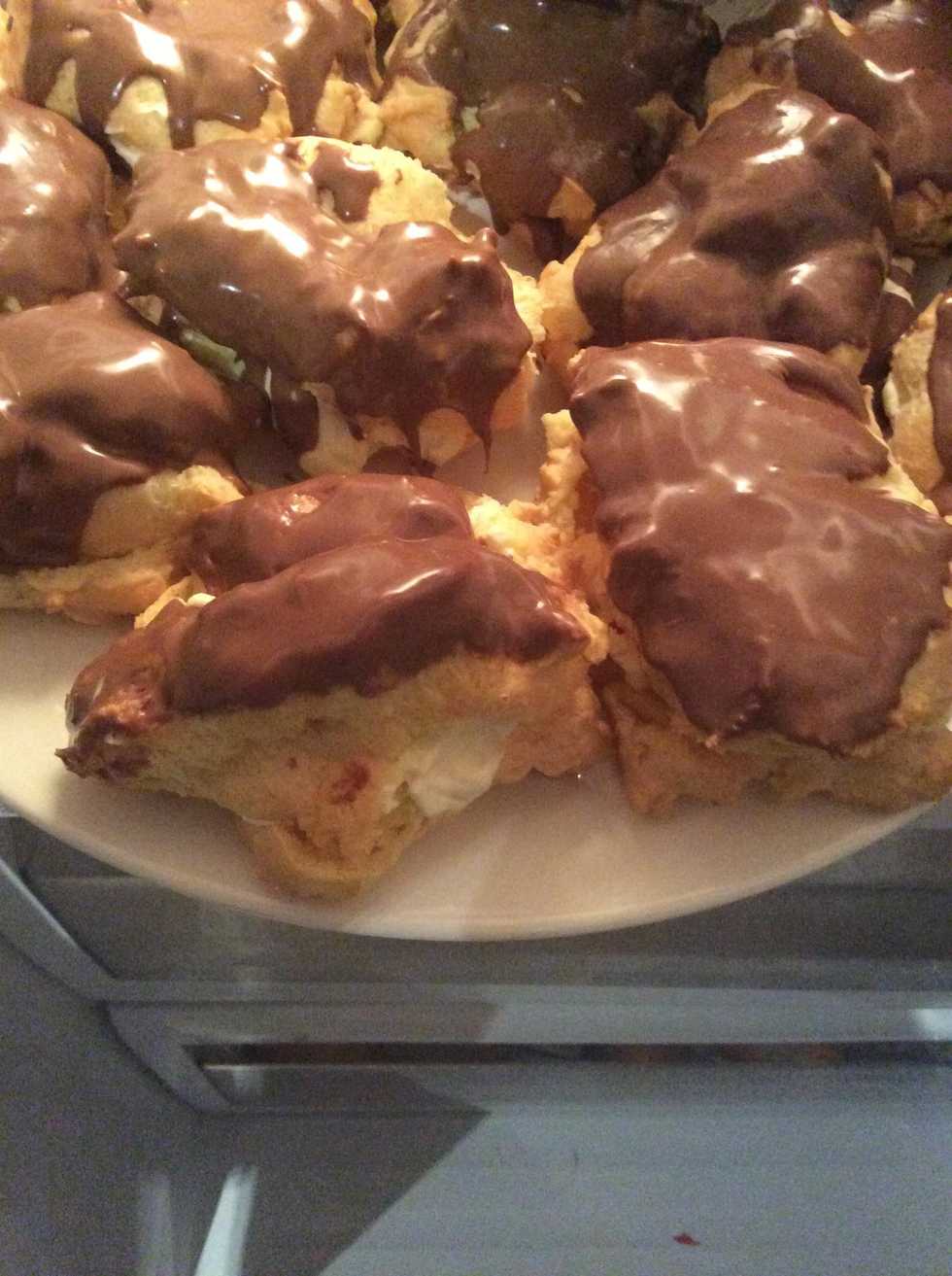 Allow mixture to cool for a couple of minutes. Then beat the eggs with an electric whisk a little at a time until shiny.