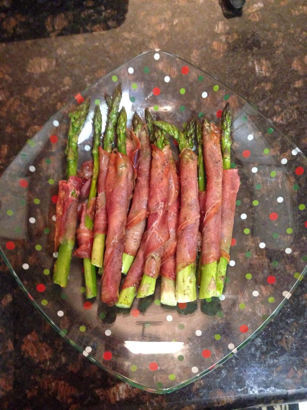 Wrap each asparagus in 1 piece of prosciutto