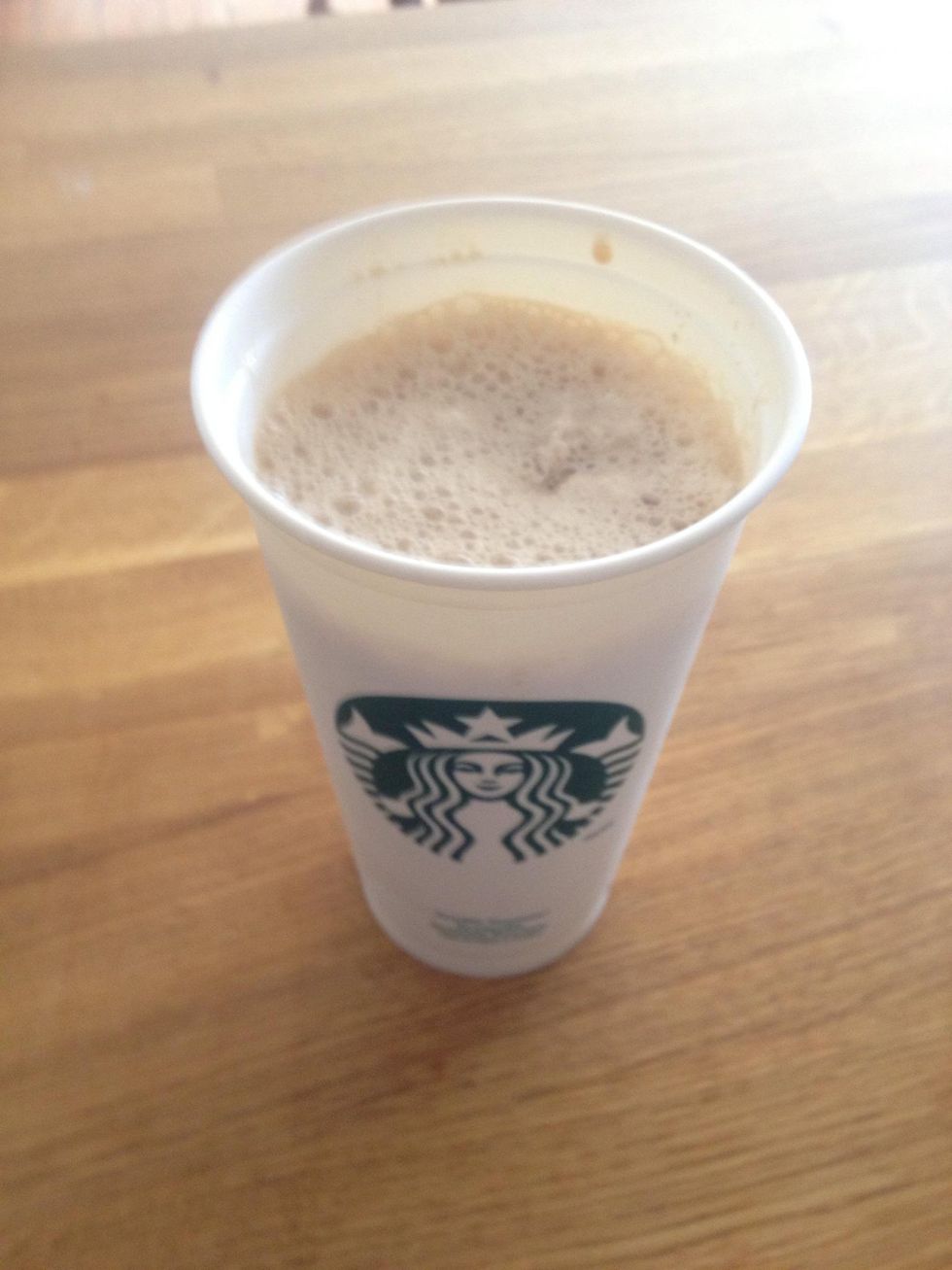 Start with a shot of espresso. I used Starbucks Via (decaf)