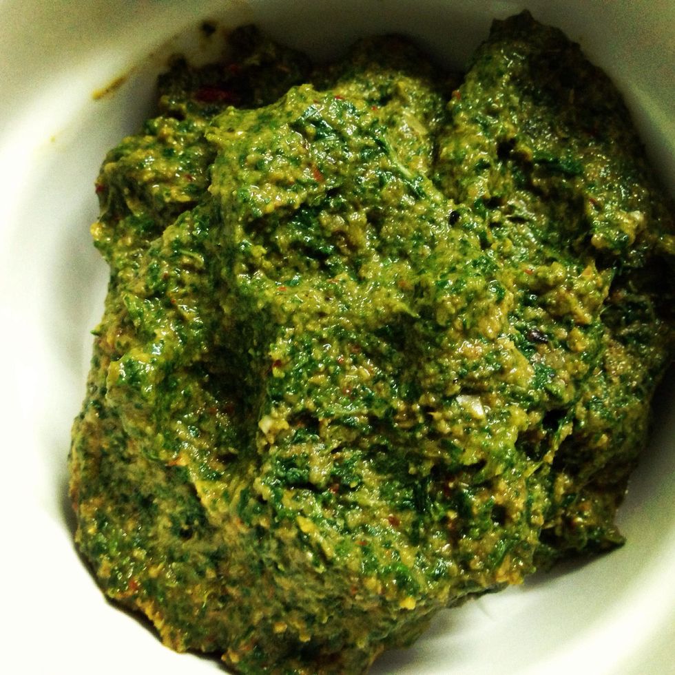 Sauté the mint leaves until it reduces in volume and add salt. Set aside and let it cool down.