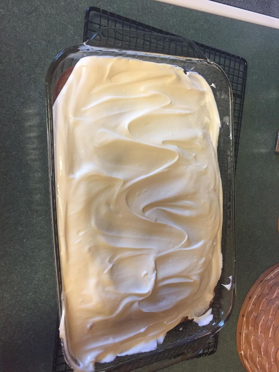 Step 4 Spread the batter into a greased 13 x 9" baking pan. Bake for 30 minutes. Let cool before frosting. Cut into bars.