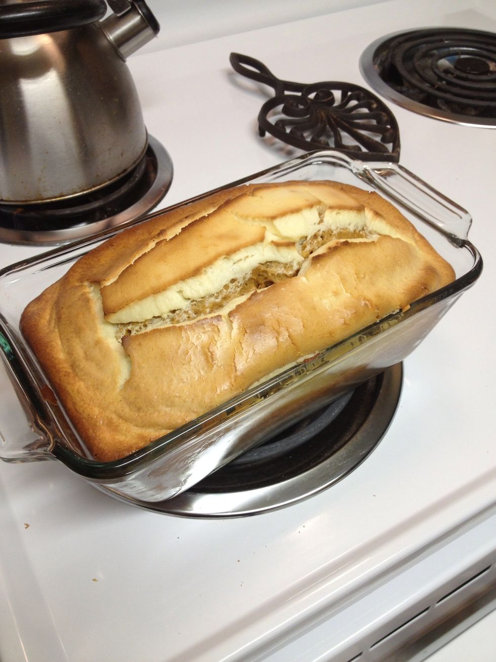Preheat oven to 350 f and grease one loaf pan or three mini loaf pans I forgot to mention that the cream cheese and one egg need to be at room temperature!!