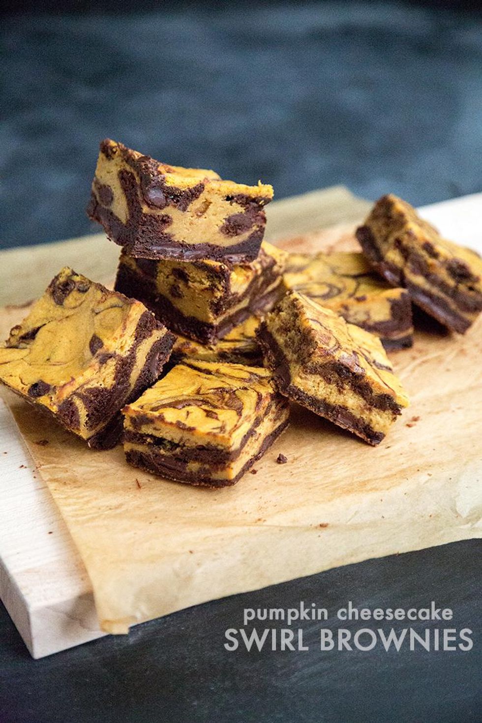 For more detailed instructions visit my blog at: http://www.thelittleepicurean.com/2015/09/pumpkin-cheesecake-swirl-brownies.html