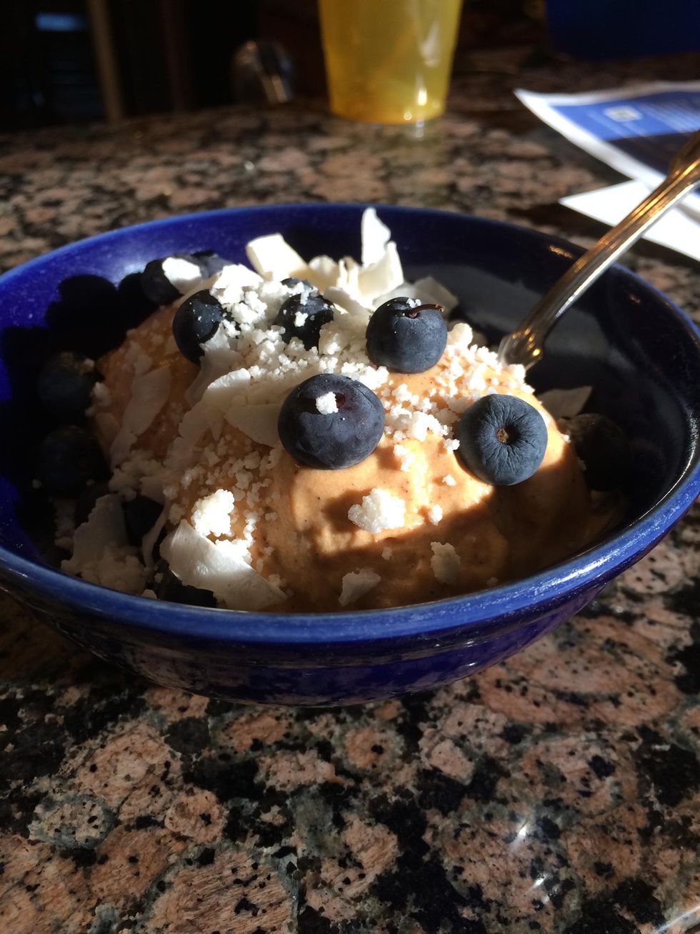 All done! Pretty, isn't it. I added coconut flakes and blueberries. Other good additions would be chocolate chips, baked apples or granola. Thanks for viewing and I hope you enjoy this recipe! <3