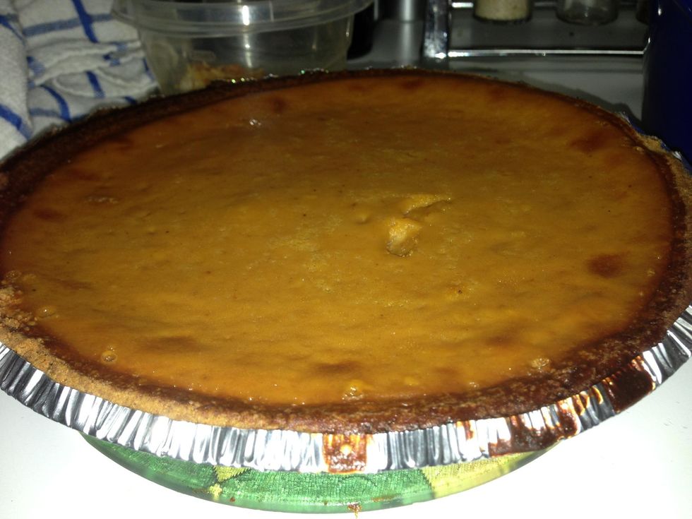 Poor your filling into the crust and bake in preheated 425 degree oven for 15 minutes. Then lower the temp to 350 for another 45 minutes or until an inserted knife comes out clean. Refrigerate.