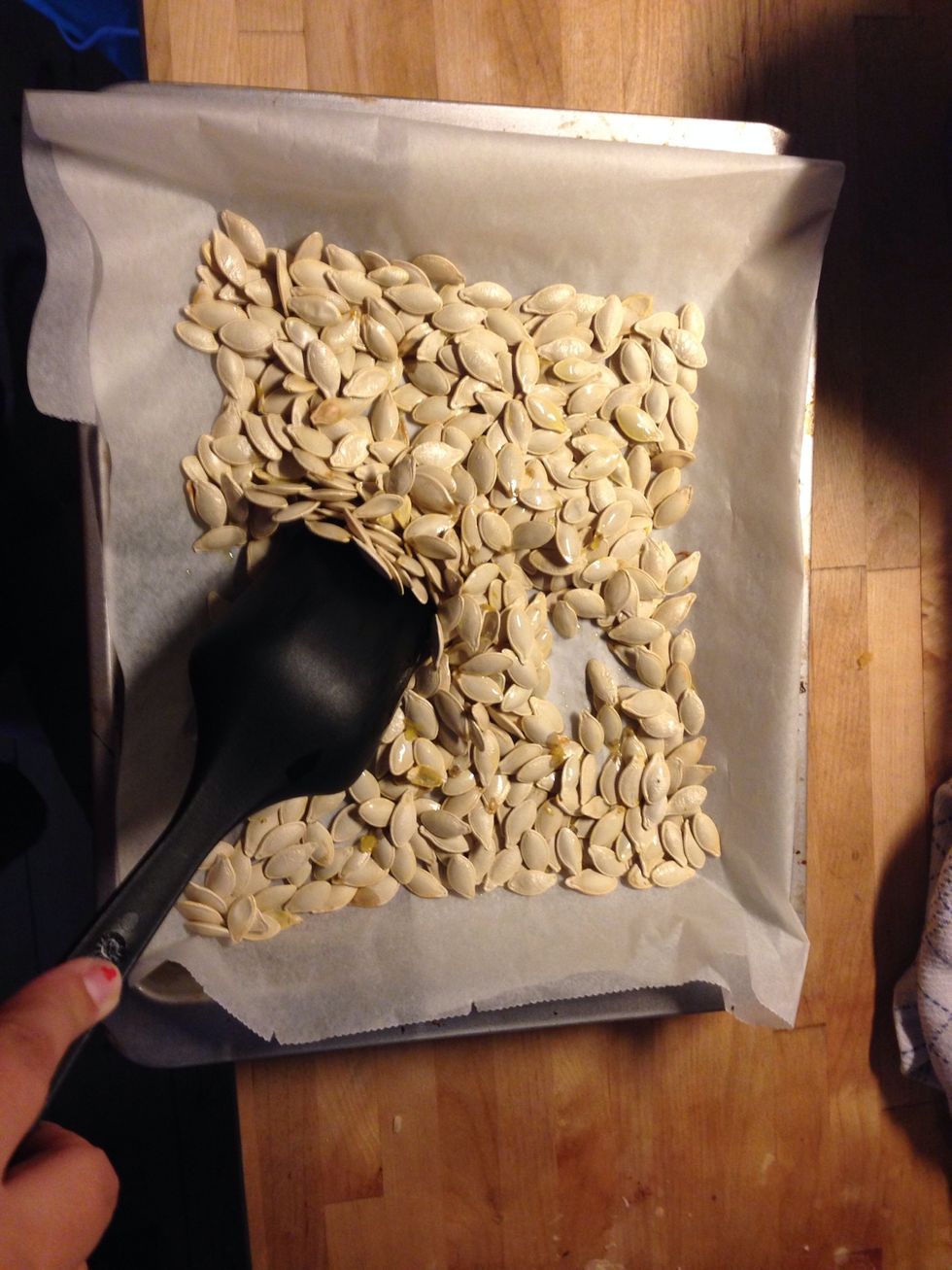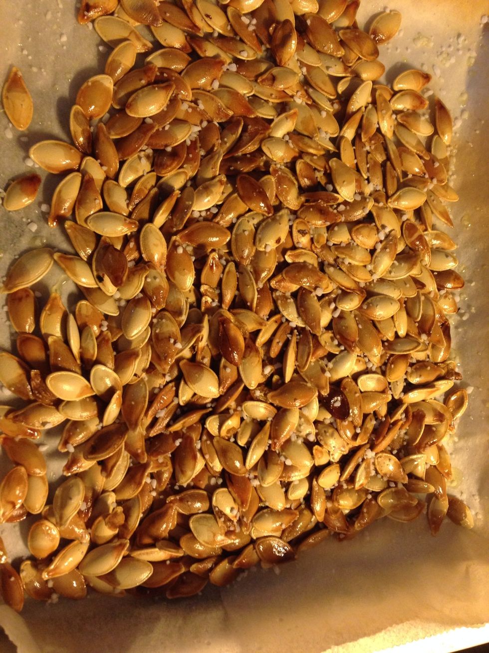 And place the dry seed on the oil, and put them in the oven at 175 degrees in 30 min.