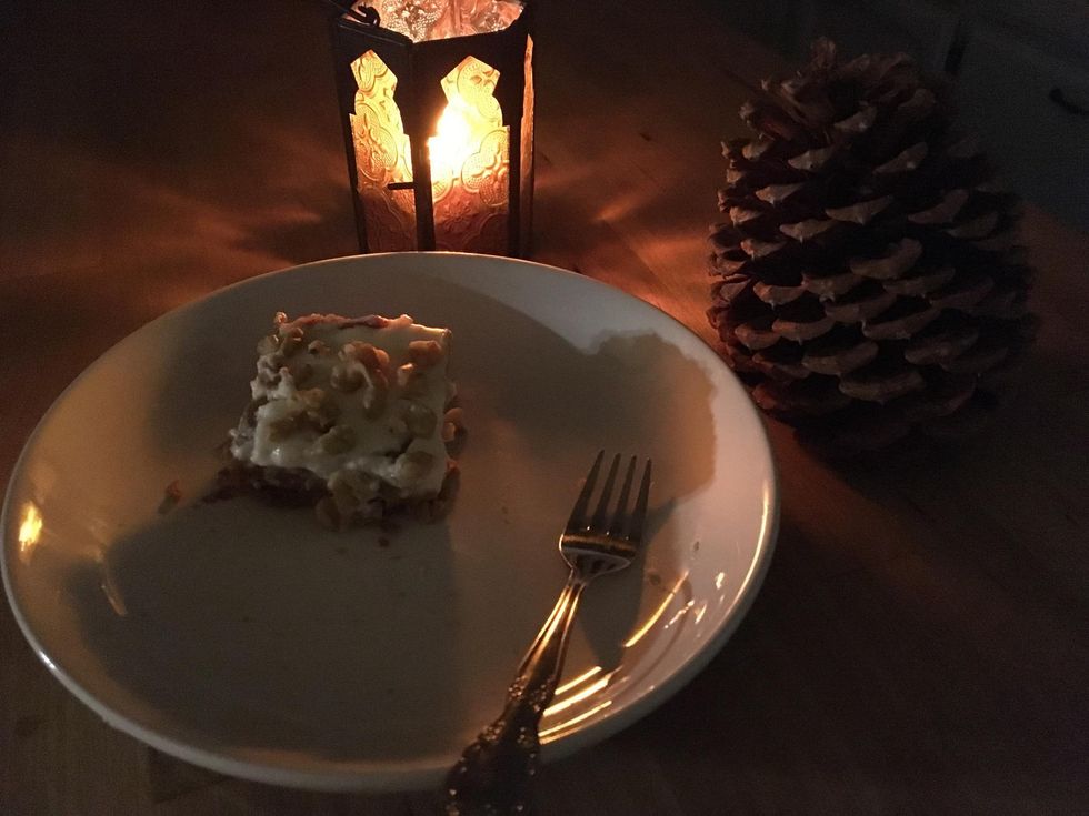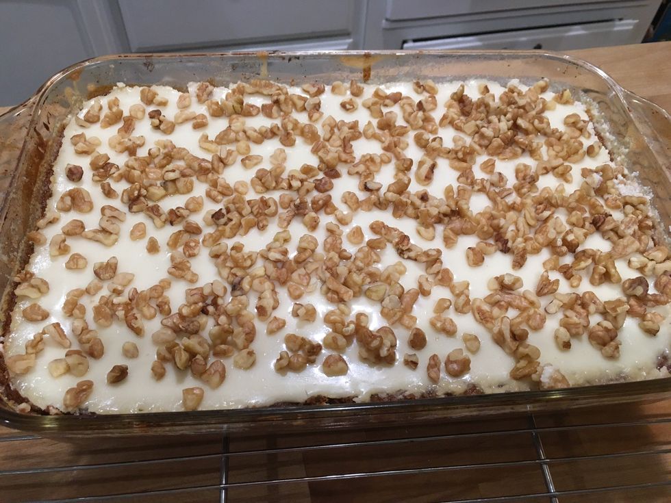Sprinkle walnuts to your heart's desire. I did 3/4 of a cup.