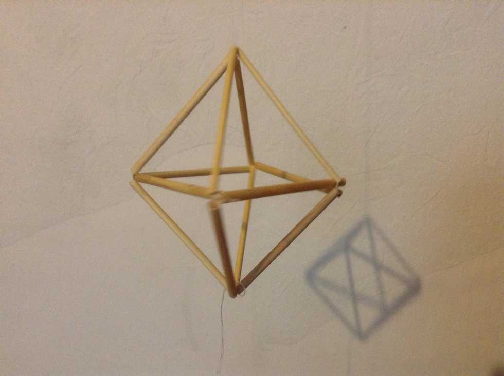 Than connect next to triangles. All together will look like 2 small pyramides connected together.