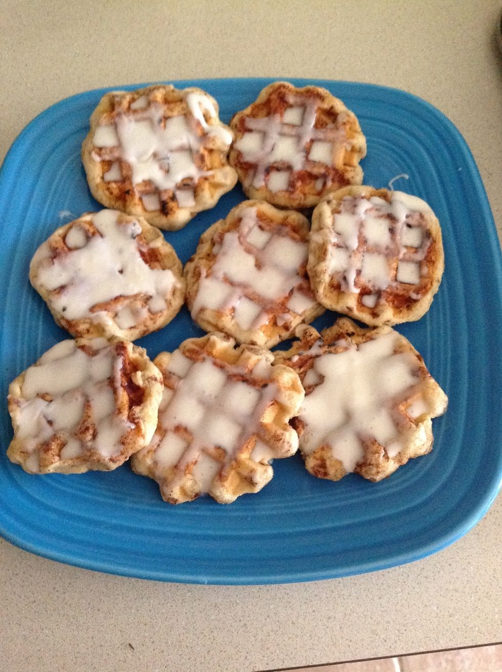 Place the cinnamon rolls into the waffle maker. Close the lid and press down slightly.