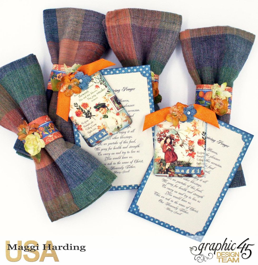 Now lets make a card to go with the name tags. You could print your menu on these cards. I have chosen to add a Thanksgiving prayer to my cards. Cut paper to sizes shown in the photo.