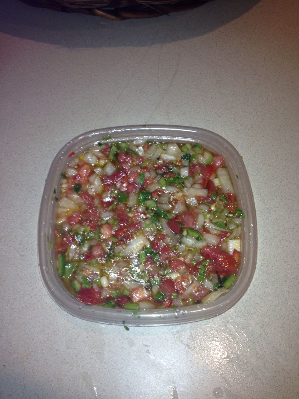 Mix well and let marinate over night serve with chips, over toasted bread or add into tacos for a kick, enjoy!
