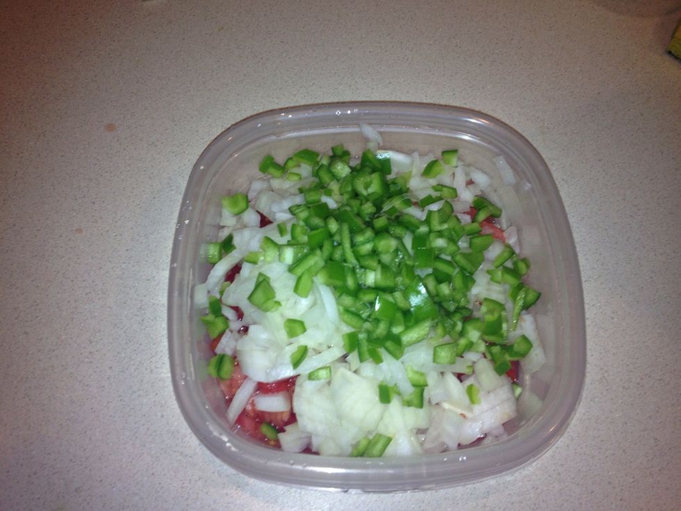 Dice green peppers