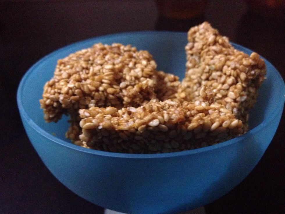 Heat sesame seeds on low flame on a good utensil until it becomes lil brown.